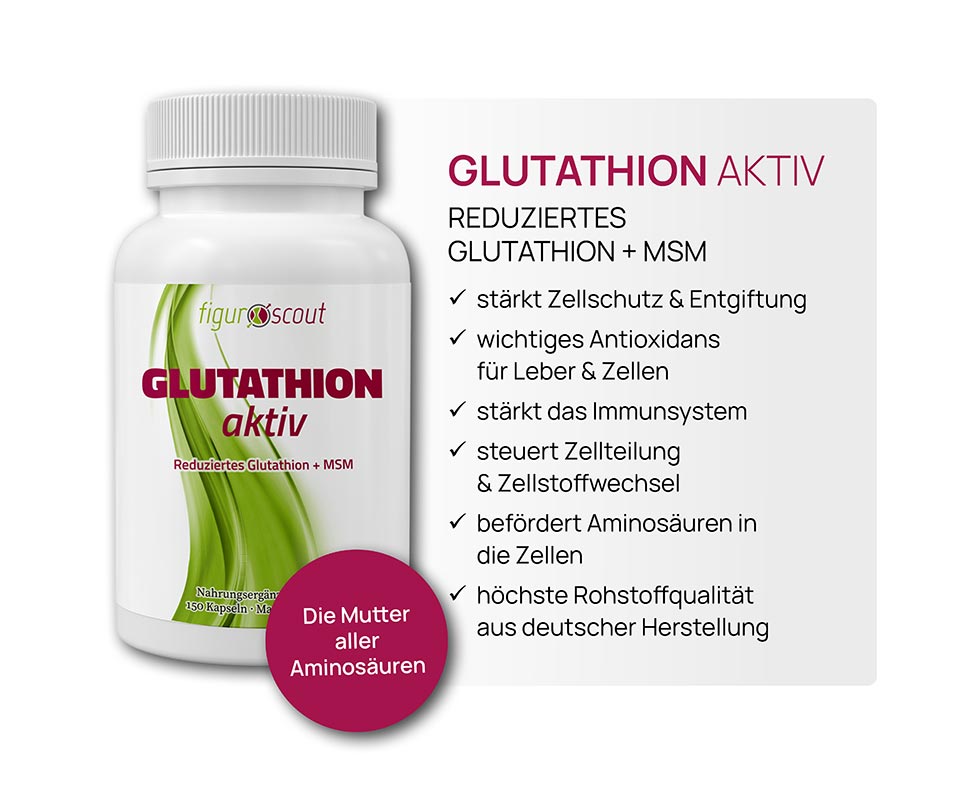 Glutathion (GSH) ist ein körpereigener Stoff, der in jeder unserer Zellen vorkommt. Es handelt sich um ein wasserlösliches Tripeptid, das aus den drei Aminosäuren Glycin, Cystein und Glutaminsäure besteht. Besonders hoch konzentriert ist Glutathion in der Leber, wo es vielfältige Aufgaben übernimmt.